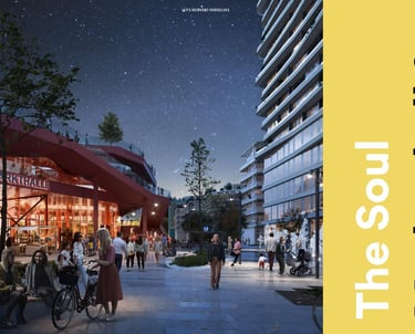 未来愿景:打造集居住、办公、餐饮、零售与休闲为一体的“未来社区”,采用绿色低碳设计,全配套公共空间,计划开发逾150,000 m²租赁面积及20,000 m²开放公共空间