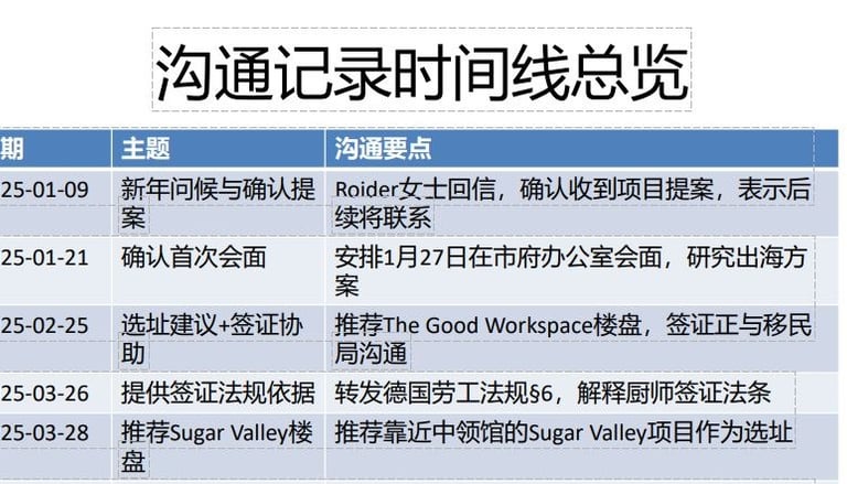 2025年:项目启动 · 与市政府商务发展局(如Rita Müller‑Roider)对接选址、签证及投资落地初步沟通